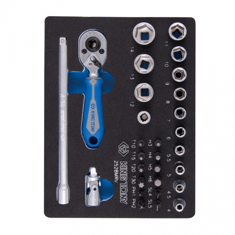 Набор торцевых головок с принадлежностями 1/4, шес-е, 4-14 мм, 29 пр. KING TONY 2528MRV характеристики