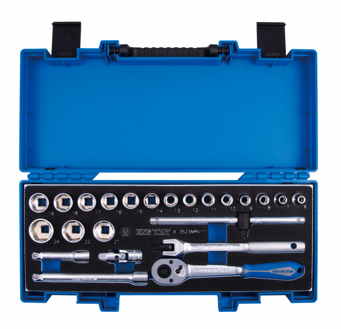 Набор торцевых головок с принадлежностями 3/8, шест-е, 6-24 мм, 23 пр. KING TONY 3523MRV11 характеристики