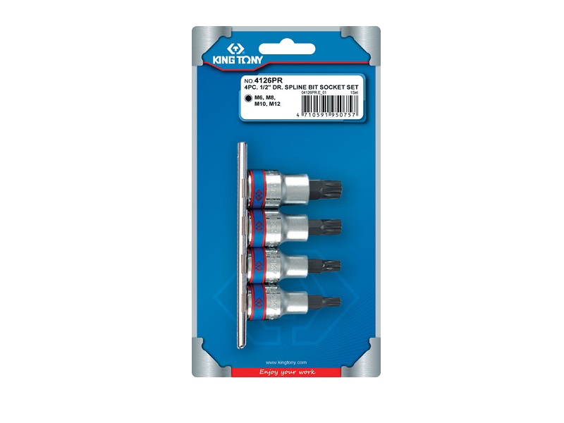 Набор торцевых насадок 1/2", SPLINE, М6-М12, L = 80 мм, 4 предмета KING TONY 4126PR