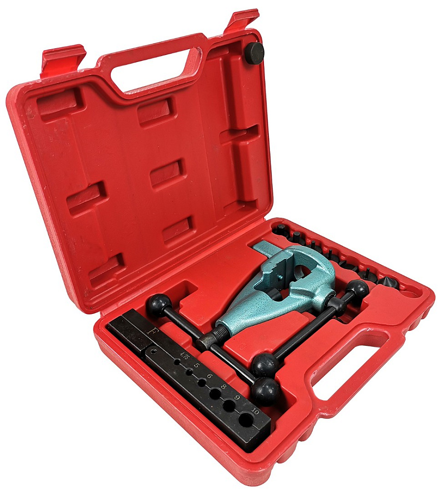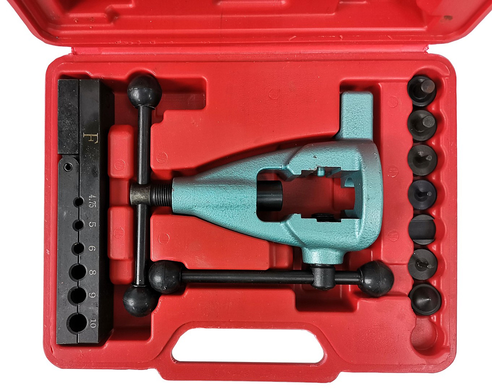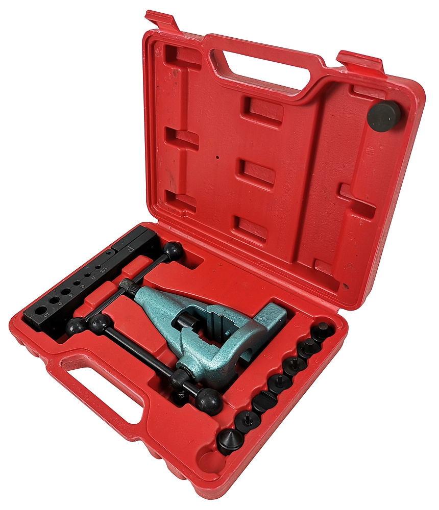 Инструмент для развальцовки труб AE&T профессиональный, 10 предметов TA-M1081 предназначен для развальцовки окончаний медных и латунных трубок. Подходит для работы с газовыми, водопроводными, охлаждающими и тормозными системами.