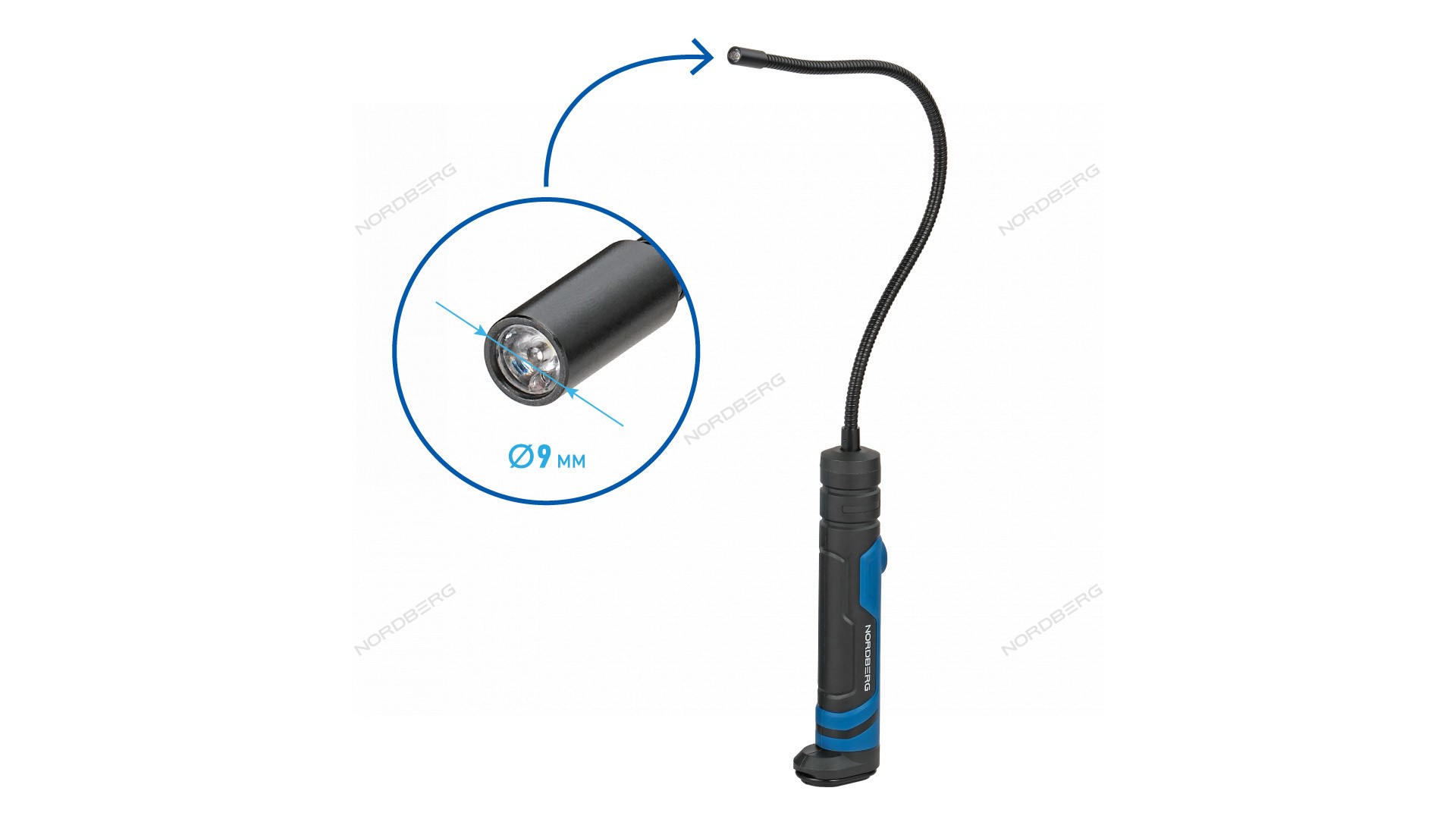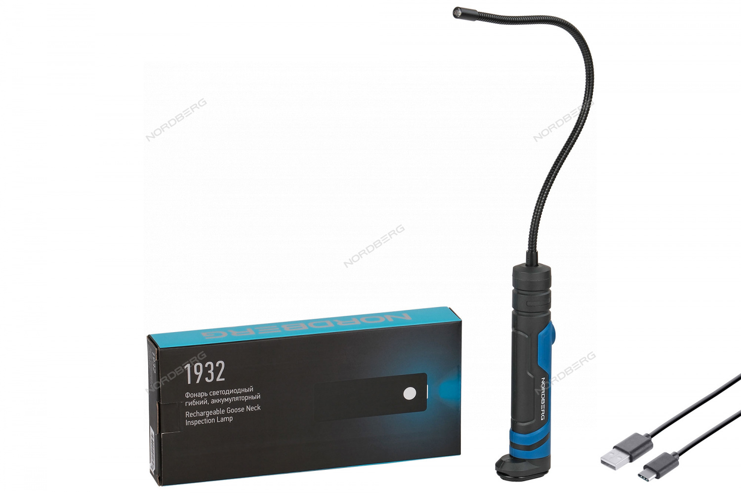 Светодиодный гибкий аккумуляторный фонарь NORDBERG 1932 – удобный компактный инструмент при проведении ремонта, обслуживания или осмотра необходимых деталей и механизмов автомобиля в автосервисах и СТО.