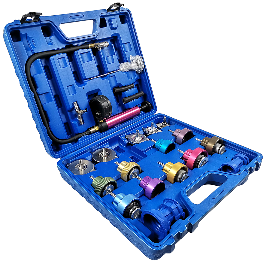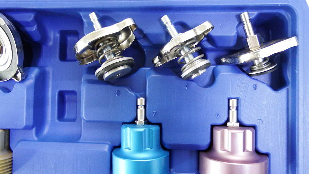 Опрессовка TA-G1022 применяется в различных автотранспортных предприятиях, незаменима при проверках радиаторов, поиске утечек и закачке охлаждающей жидкости. В наборе насос, шланги 5/16 и 3/8 дюйма, тройники 5/16 и 3/8 дюйма, адаптеры разных цветов, чтобы быстро и легко находить необходимый.