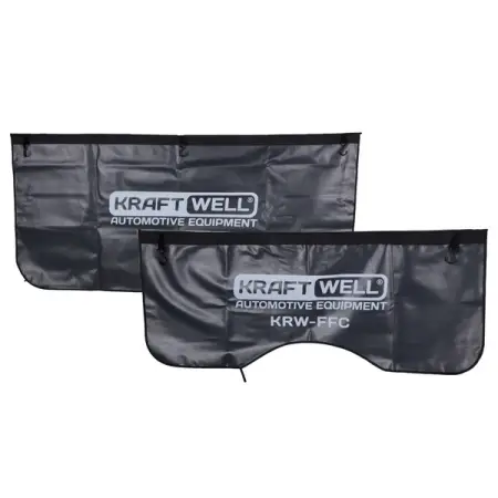 При ремонте автомобиля возможна ситуация, когда автомеханик может прислониться к кузовным элемантам, например, крылу и случайно поцарапать его или испачкать. Избежать подобных ситуаций помогут защитная накидка на крыло KRW-FBC размером 1100х450 мм и защитная накидка на бампер KRW-FBC размером 1350х650 мм. Они изготовлены из износоустойчивого материала и позволяет в должной мере защитить элементы кузова от царапин и грязи.