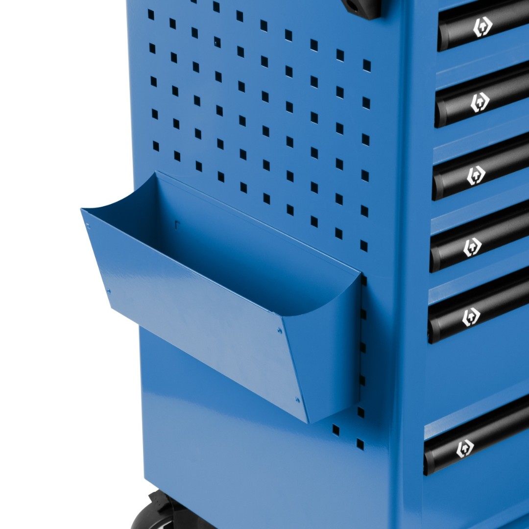 | Материал | Листовая сталь (корпус), вспененный PU (защитные коврики), алюминий (рукояти выдвижных ящиков), PVC (верхний органайзер), TPR+PP (колёса) |