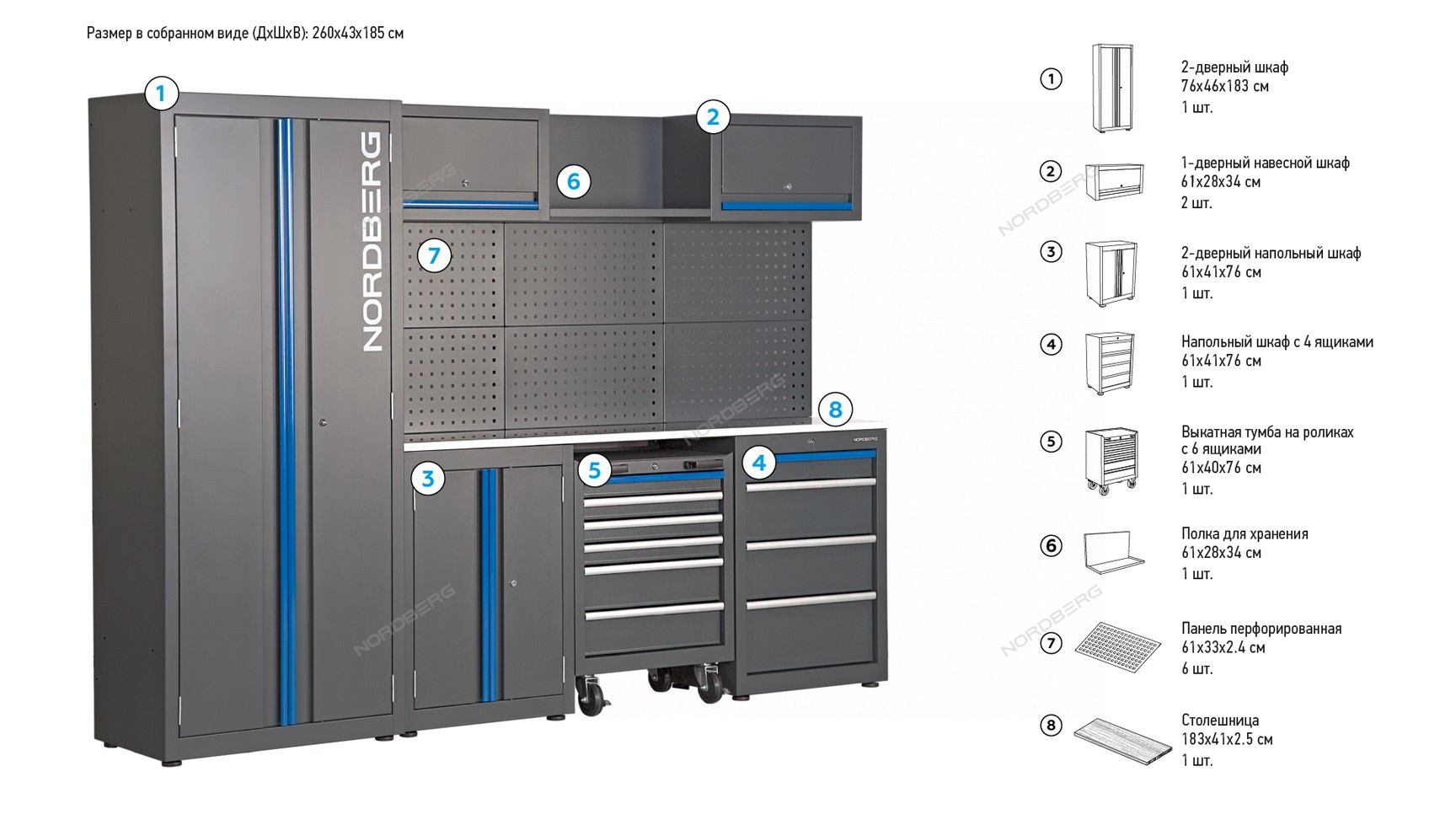 Набор мебели NORDBERG TT113 – уникальная комбинированная модульная мебель, предназначенная для автосервисов, студий детейлинга, личных гаражей.