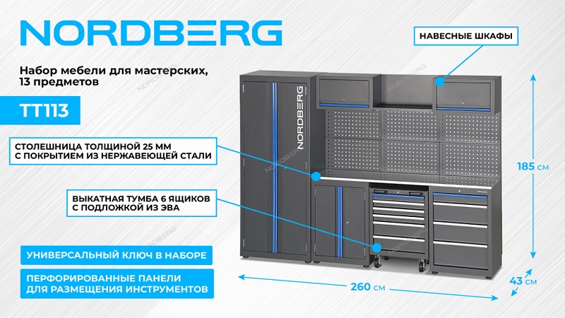 Набор мебели для мастерских, 13 предметов Nordberg TT113 характеристики