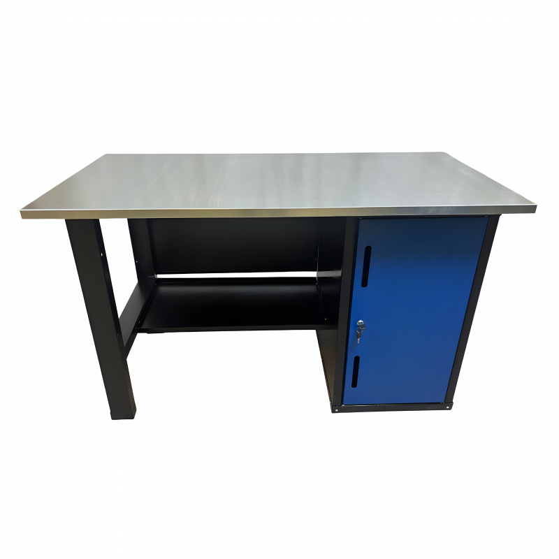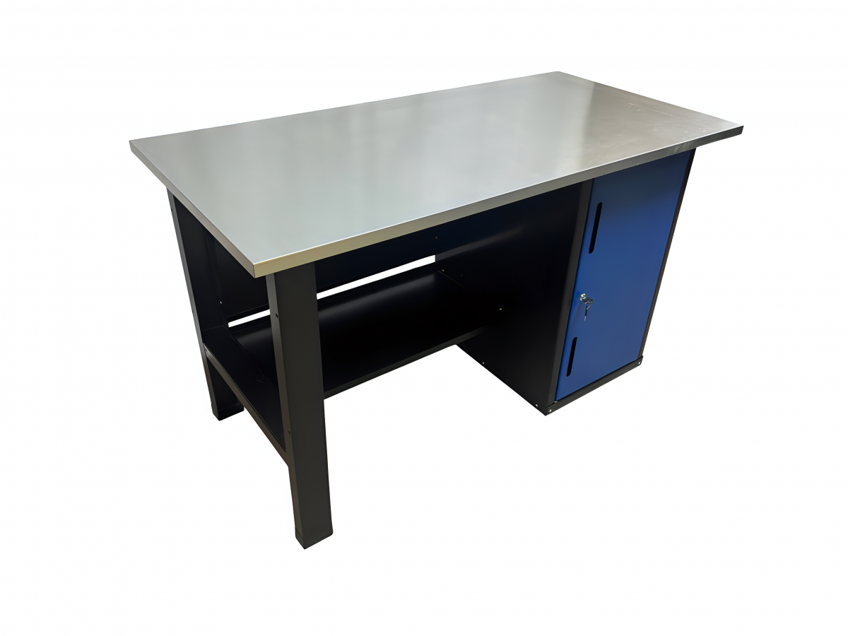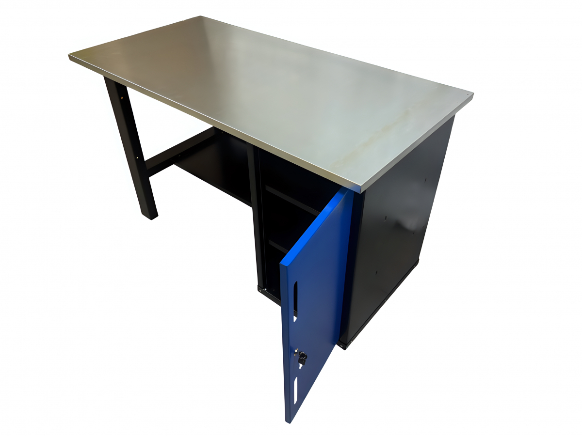 Усиленная столешница (1400х700х27мм) из МДФ и оцинкованного металла позволяет закрепить тиски и производить любые силовые работы по ремонту.
