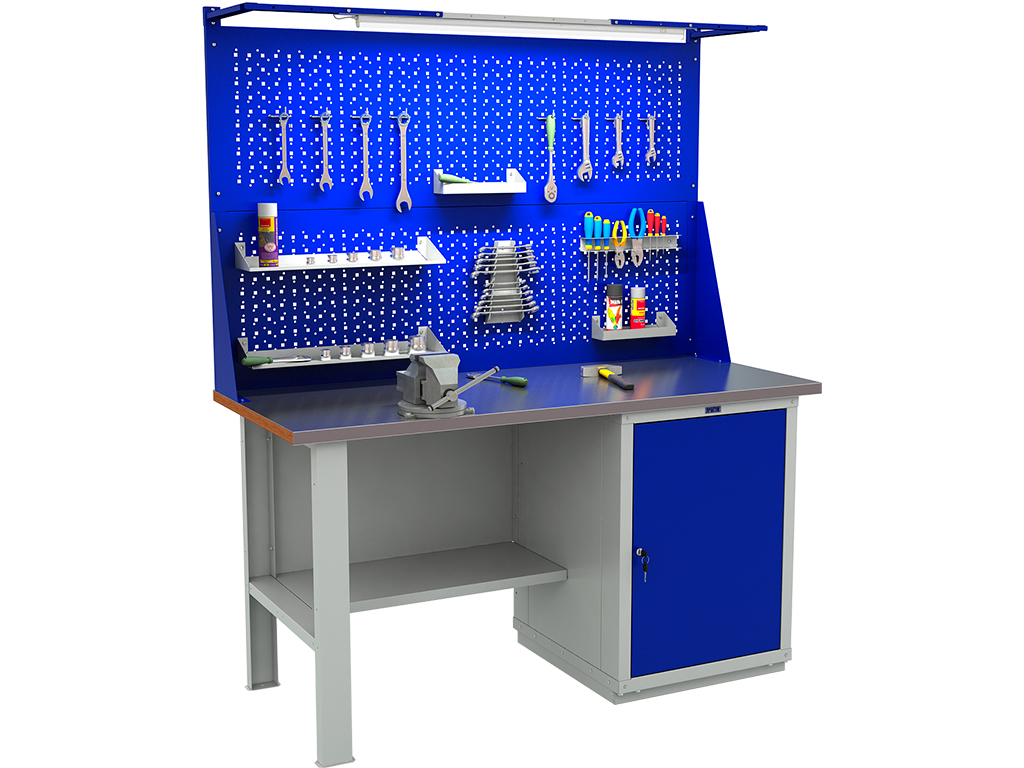 Дополнительно верстак можно укомплектовать перфорированным экраном соответствующего размера, светодиодным освещением и аксессуарами для инструментов.