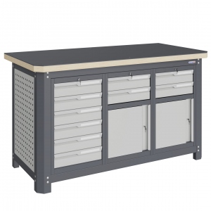 Модуль верстака выполнен сварными. Ящики в модулях устанавливаются на шариковых телескопических направляющих полного выдвижения.