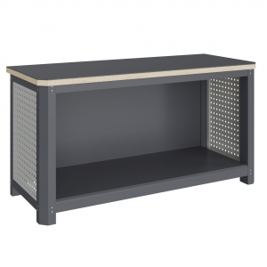 Рама верстака выполнена их холоднокатаной стали. Опоры допускают частичную регулировку по высоте для компенсации неровности пола.