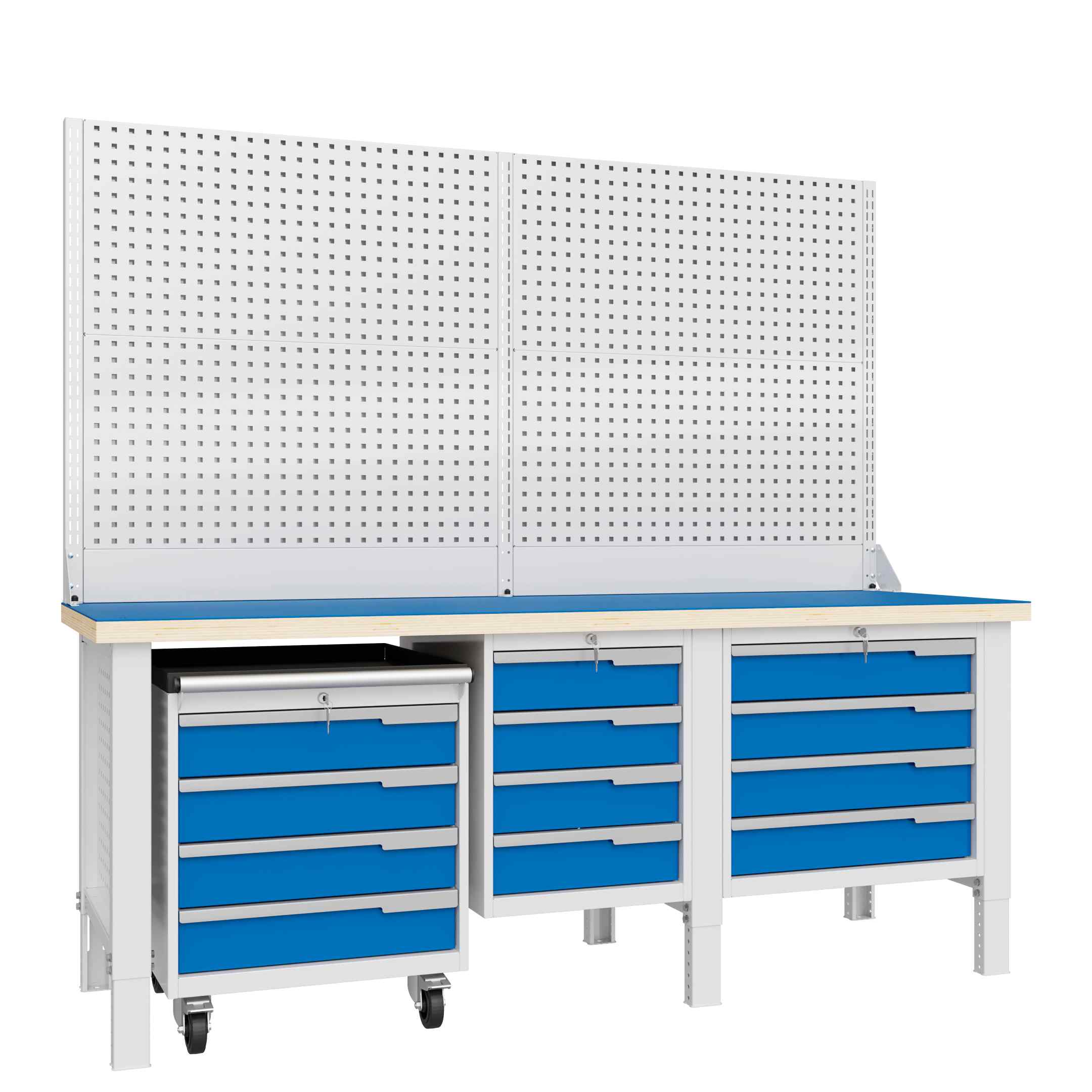 Рама верстака выполнена из холоднокатаной стали толщиной 2мм, модули - из стали 0,8мм.