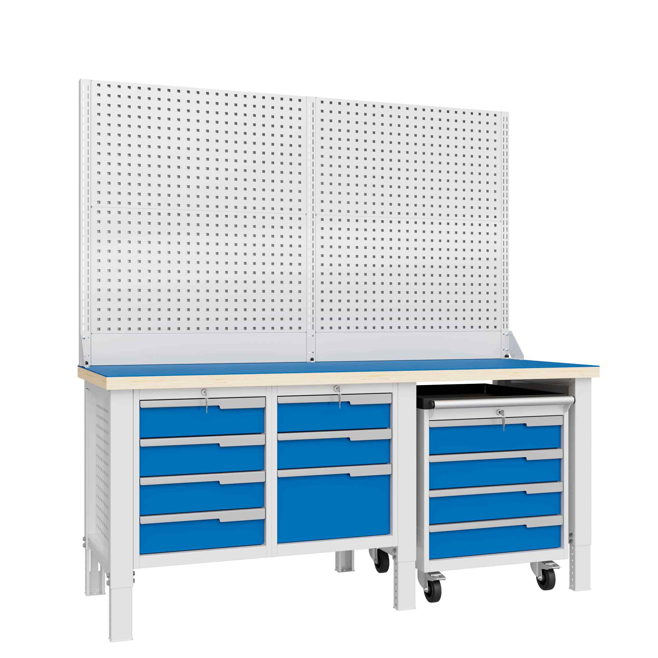 Рама верстака выполнена из холоднокатаной стали толщиной 2мм, модули - из стали 0,8мм.