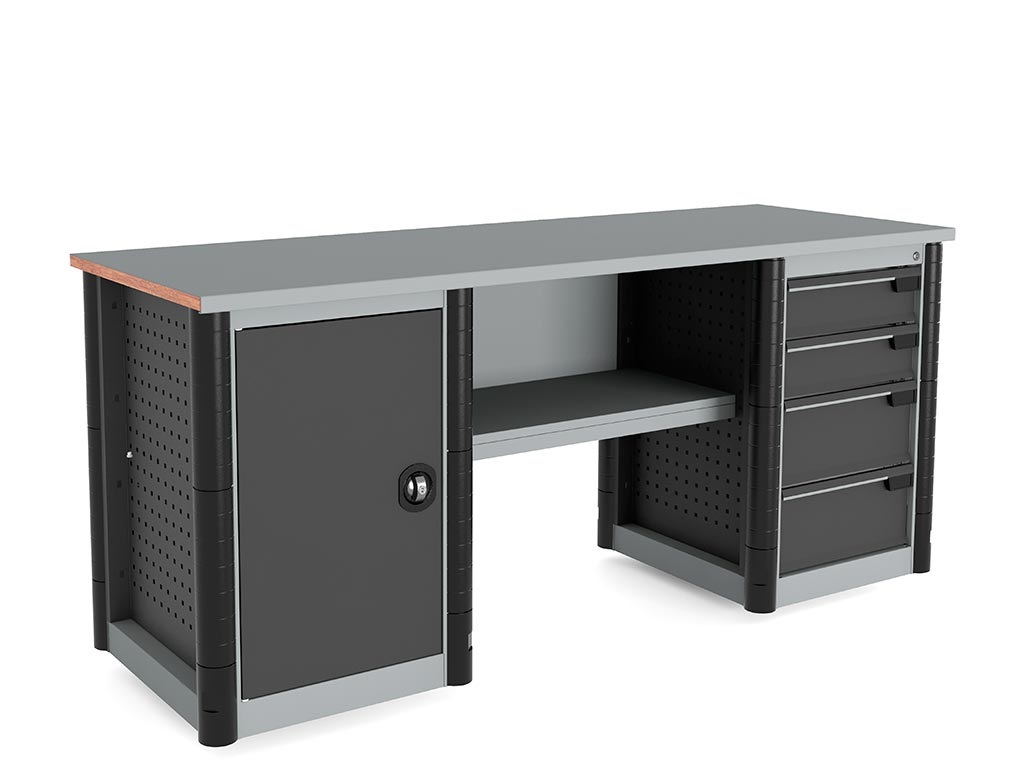 Боковые прорезиненные бампера на тумбе и опоре защищают торцы верстака от непреднамеренного повреждения