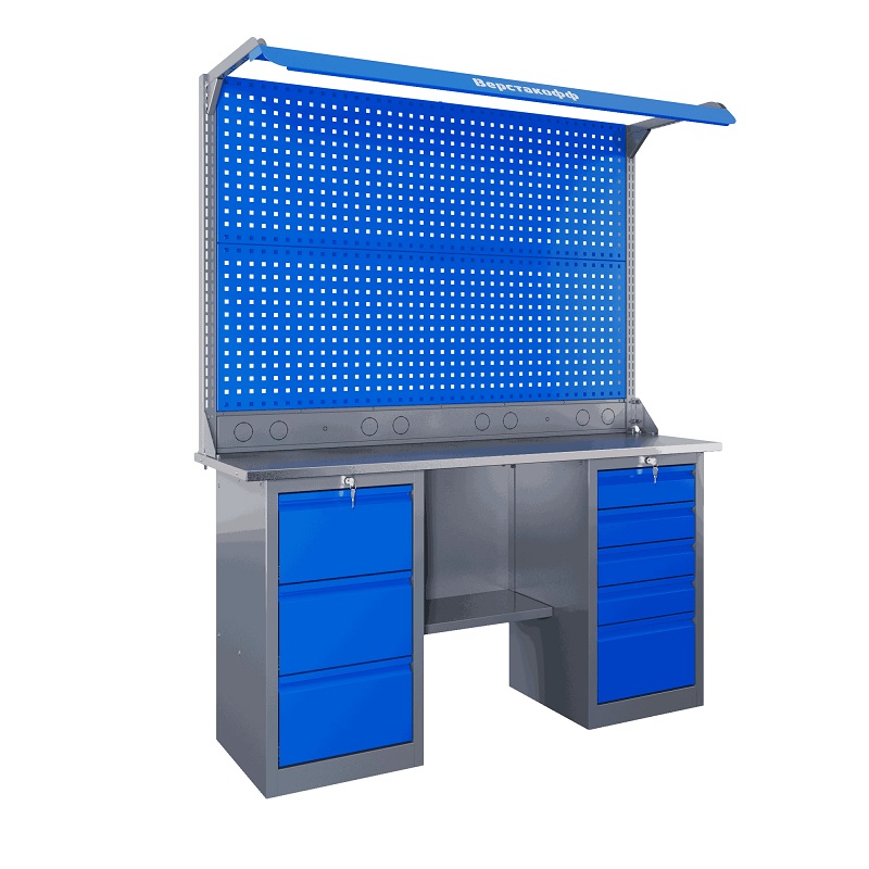 Самые компактные верстаки с глубиной столешницы 500 мм. Благодаря небольшой глубине, такие верстаки легко размещаются в ограниченных пространствах, например, в гаражах, мастерских и тд. Несмотря на компактные размеры, верстаки могут быть оснащены полками, ящиками и держателями для инструментов, что помогает поддерживать порядок и быстро находить нужные предметы.
