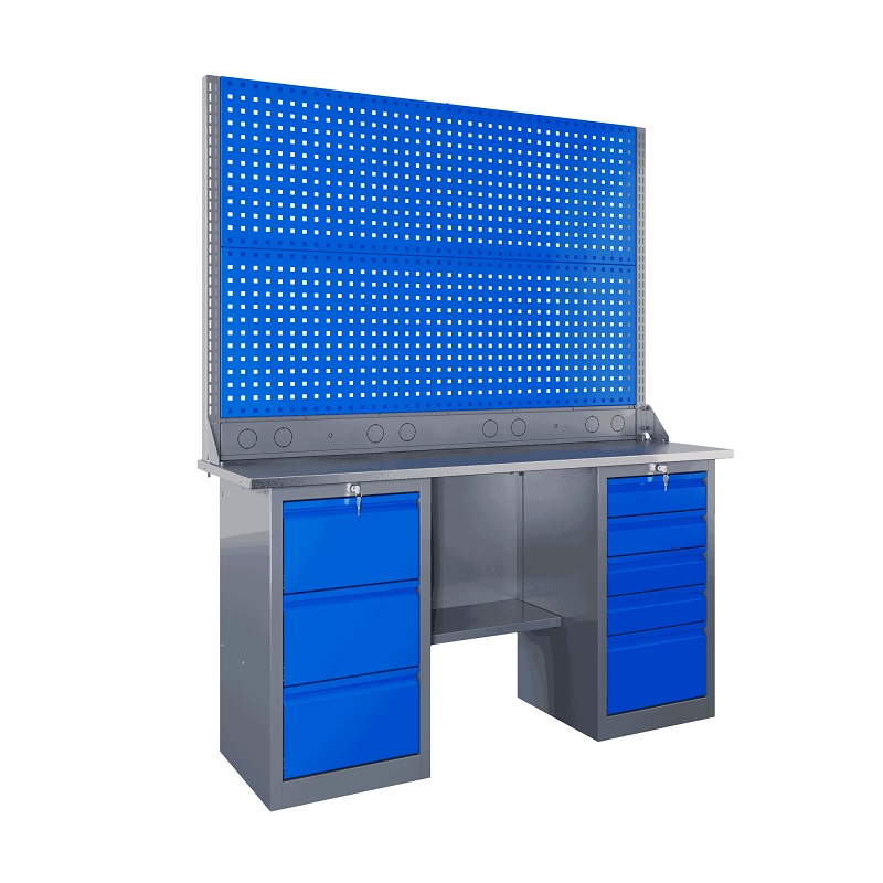 Самые компактные верстаки с глубиной столешницы 500 мм. Благодаря небольшой глубине, такие верстаки легко размещаются в ограниченных пространствах, например, в гаражах, мастерских и тд. Несмотря на компактные размеры, верстаки могут быть оснащены полками, ящиками и держателями для инструментов, что помогает поддерживать порядок и быстро находить нужные предметы.